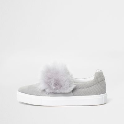 1) Grey fluffy slip-on plimsolls | River Island | €37